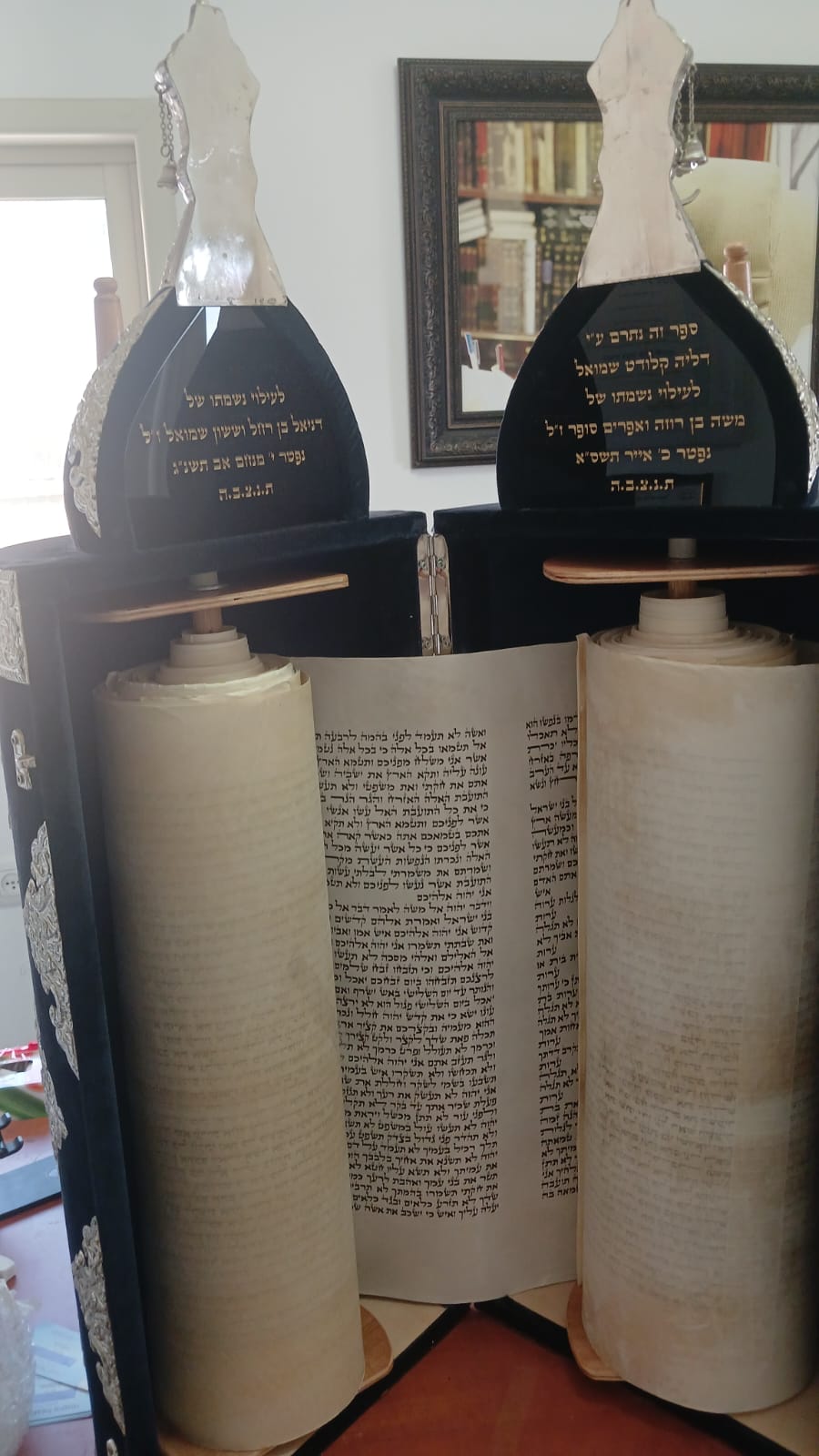 שילוט לספר תורה מזכוכית אקרלית מותאם לצורת הספר בייצור מיוחד ומדוייק.