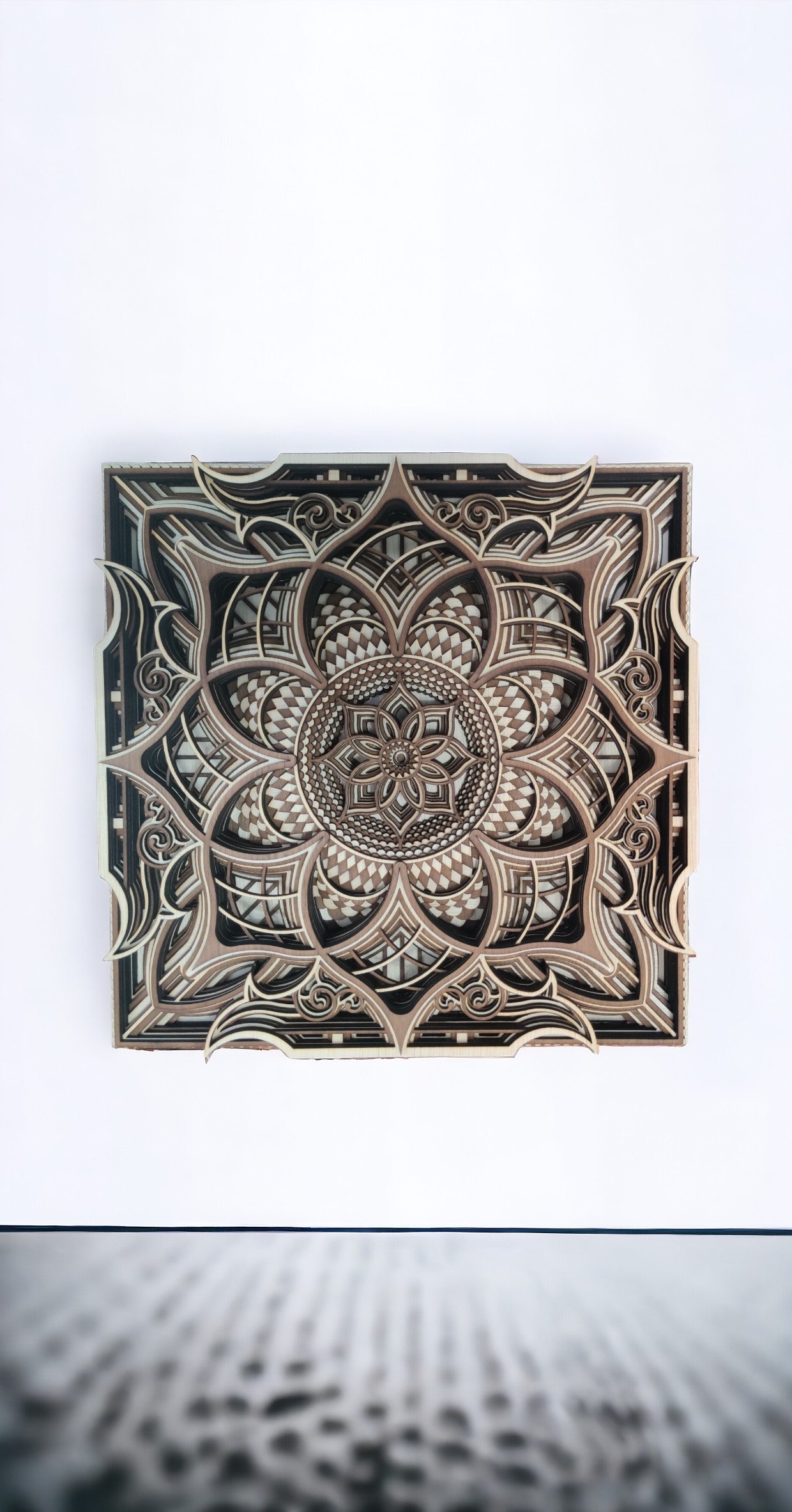 מנדלה עוצרת נשימה בת 12 שכבות, עשויה מעץ איכותי ובעלת עיצוב תלת-ממדי מרהיב. שכבותיה המורכבות משתלבות בהרמוניה ליצירת יצירה ייחודית שתמלא כל חדר באווירה של יוקרה ושלווה.
