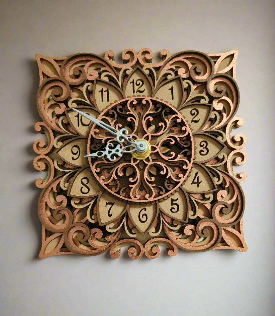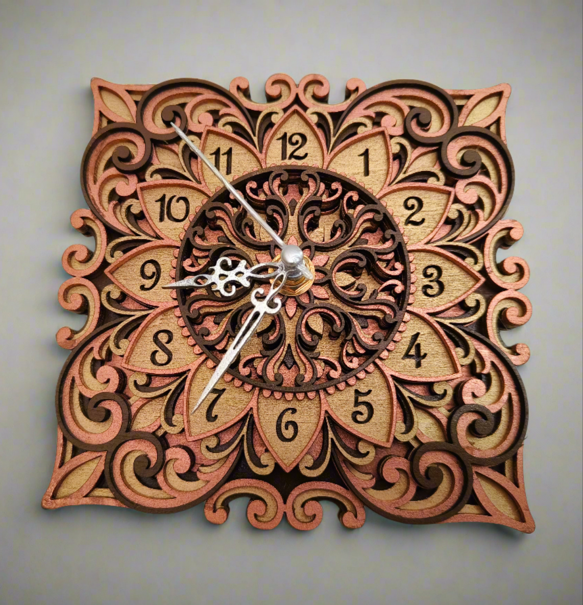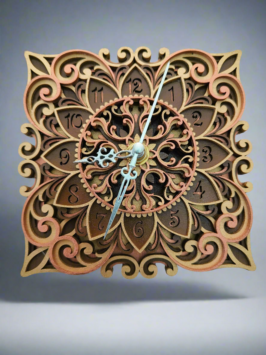שעון מנדלה מעץ מרהיב, בעיצוב 8 שכבות תלת-ממדיות ובמראה עתיק ומיוחד.