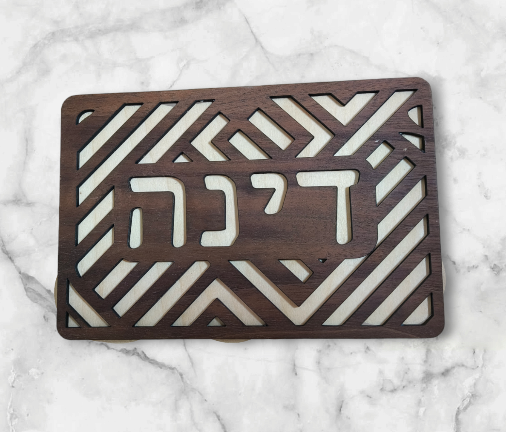 שלט כניסה ייחודי ומרשים לבית, עשוי מעץ עמיד בפני רטיבות ובעל עיצוב פסים ייחודי בשתי שכבות.