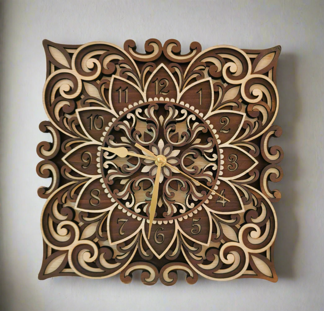 שעון קיר מנדלה עוצר נשימה, עשוי מעץ איכותי עם 8 שכבות תלת-ממדיות במראה עתיק ומלא קסם.