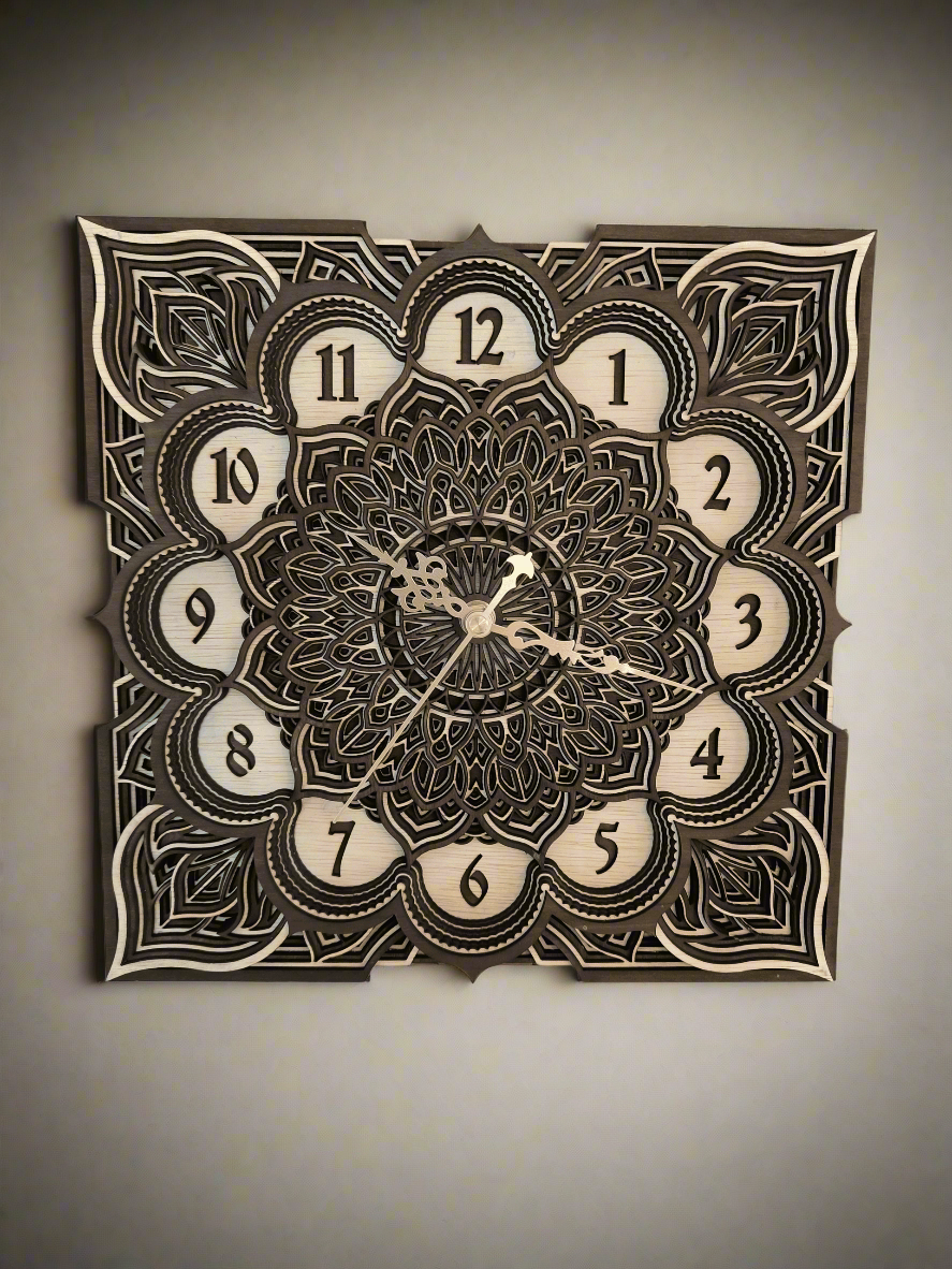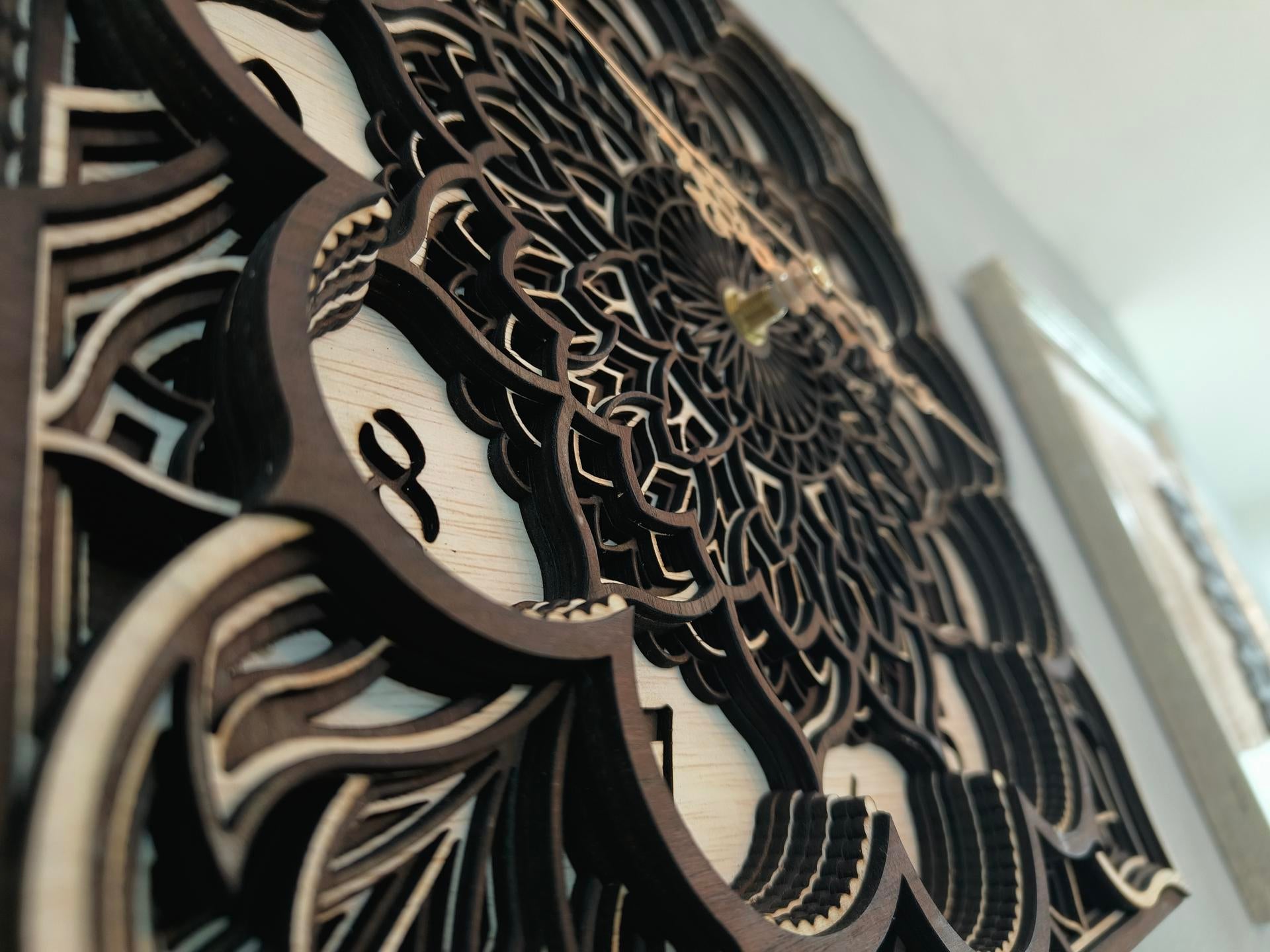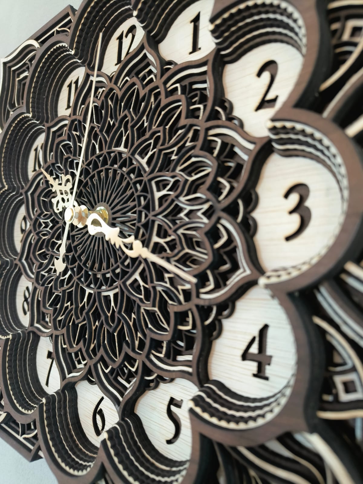 שעון קיר יוקרתי ומרהיב, בעיצוב 9 שכבות תלת-ממדיות מעץ איכותי.